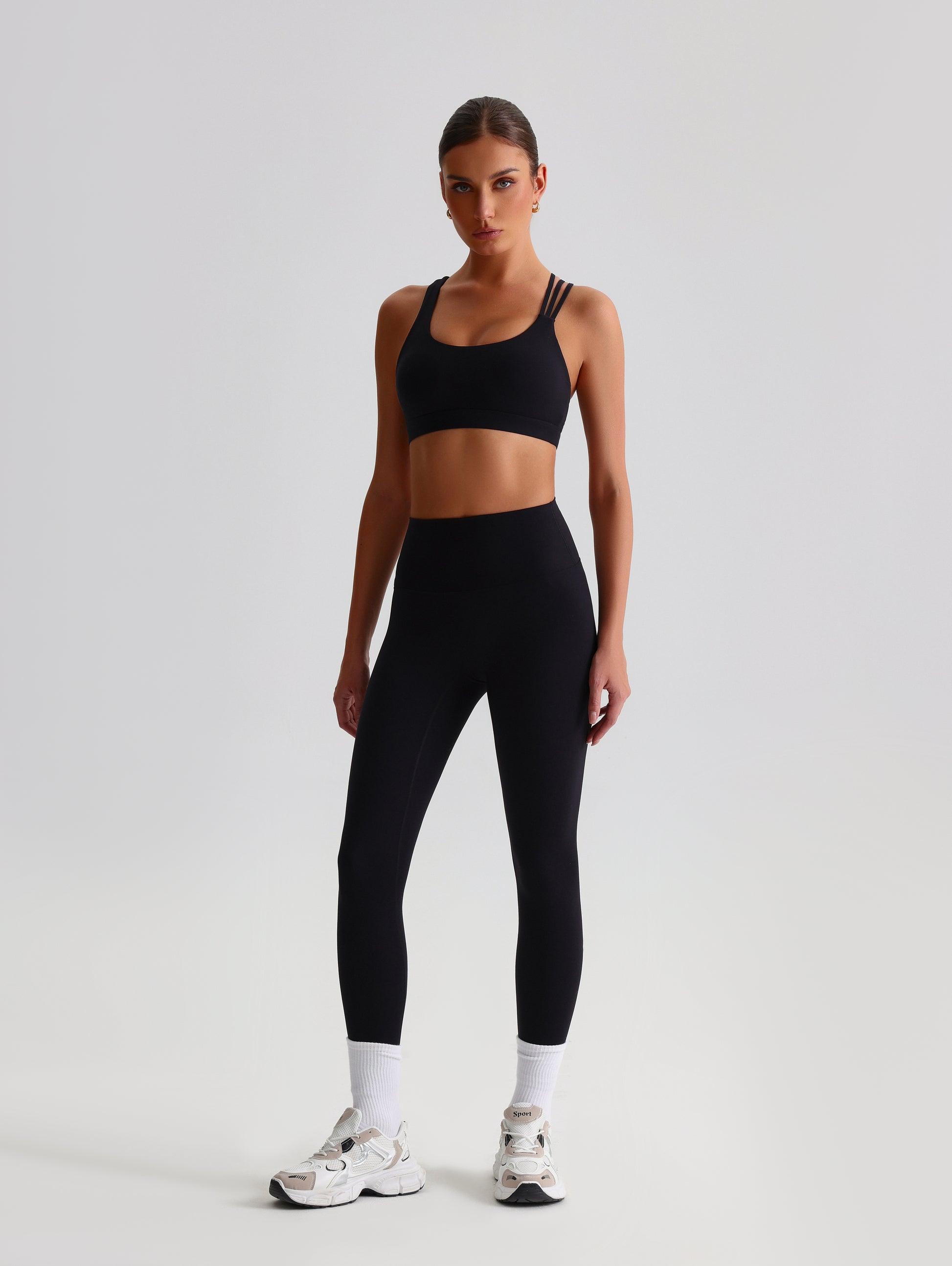 Designed as a complete performance look, the Motion Set delivers sculpting support, clean lines, and elevated training functionality. The set features a medium-support bra with a multi cross-back strap construction paired with high-waist sculpt leggings engineered for smoothing compression and unrestricted movement.